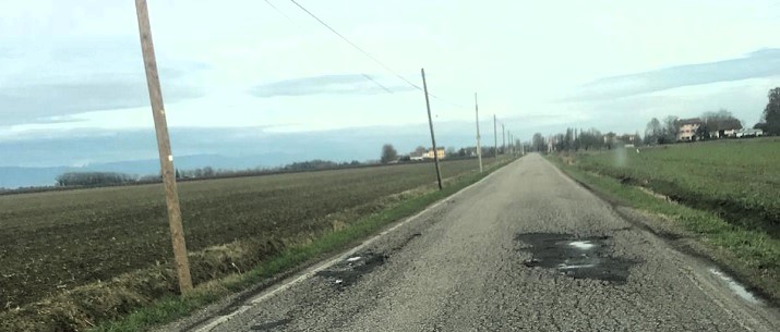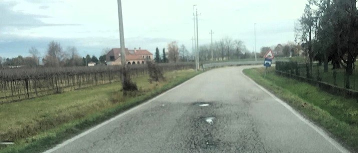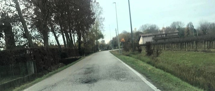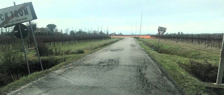 Un giro a Ca’ Tron su via Nuova e via per Meolo. Quattro chilometri in tutto di manto stradale ma le dita di due mani non bastano a fare la somma delle buche, dei rattoppi, delle screpolature e delle deformazioni.