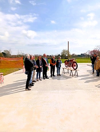 La testimone più anziana al momento della già storica posa della prima pietra delMuseo auto e moto d’epoca, sabato 14 marzo, a San Cipriano, ha 92 anni. E’ l’ultima motocicletta uscita dall’Officina meccanica Carlo Menon e, nelle foto, compare legittimamente allineata con autorità comunali, parroco e ospiti, al centro della piattaforma in cemento di 350 metri quadrati poco a lato di via Guglielmo Marconi.
