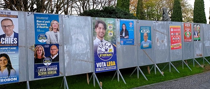 Giovedì 13 novembre, mancano dieci giorni alle elezioni per il rinnovo del governo regionale e questa nella foto è la rappresentazione della febbre politica che innerva Roncade. Cosa significa l’assenza pressoché totale, ormai a ridosso dell’appuntamento con le urne, di comunicazioni con mezzi visivi da parte dei partiti?E la mancanza, ad oggi, di presenze fisiche…